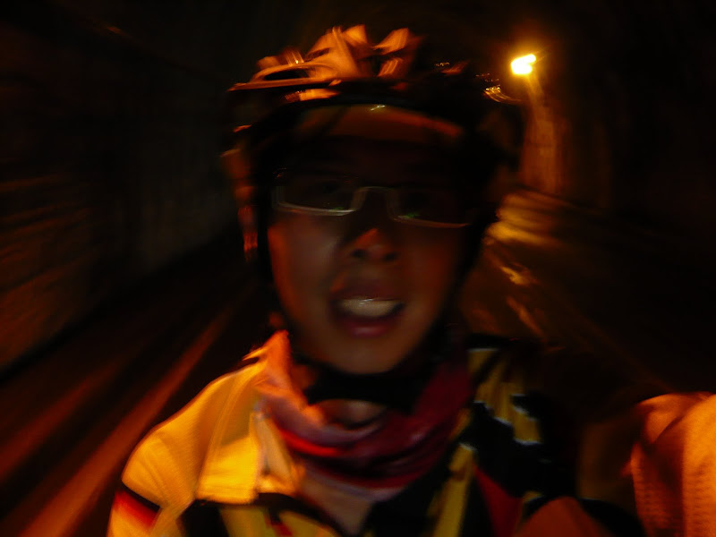 說到這個隧道唷,沿途上去會有好幾個隧道,有的有照明,有的沒照明,有的非常的長,大概都有一公里以上的距離,上坡、滲水、地上泥寧,第一天就讓我有驚心動魄,印象深刻。